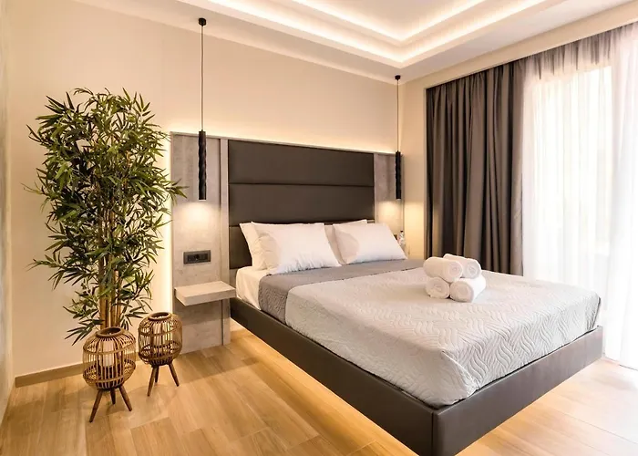 Megusta Suites Theológos hotel met 8 kamers biedt een zonneterras met een eettafel, en ligt op korte rijafstand van 10 minuten van de Farma of Rhodes.